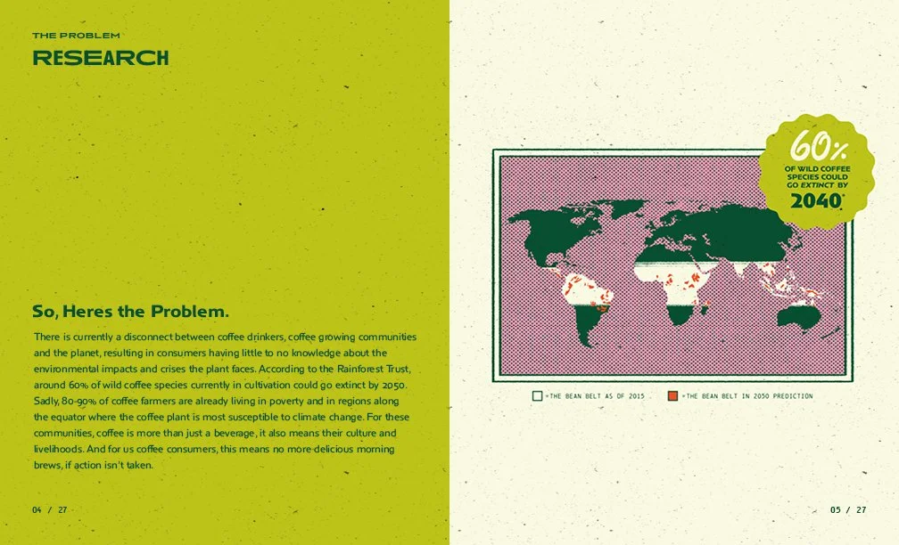 My passion for design and love for coffee culminated into my Senior Thesis project: Kindred Coffee. Committed to eco-education and environmental activism, Kindred Coffee gave me the opportunity to expand upon my interest in sustainably sourced materials, packaging possibilities, and Graphic Design’s power to inspire. Below is a walkthrough of my research process, sketching, prototyping, and design decisions I made through the creation of my Senior Thesis.